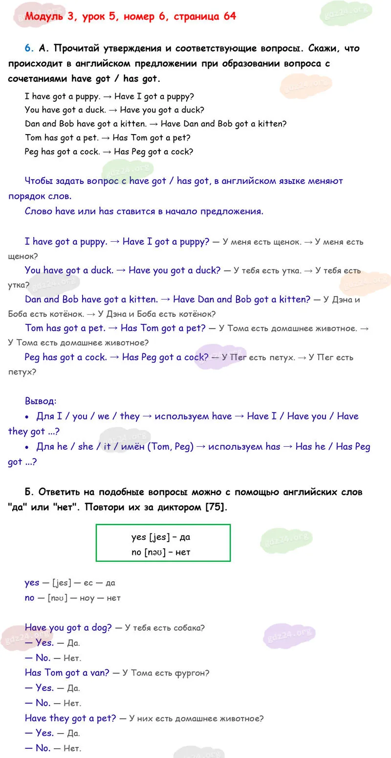Подробные ответы к 6 заданию на 64 странице учебника О. В. Афанасьевой, К. М. Барановой, И. В. Михеевой 2025 года ФГОС, 2 класс 1 часть. Модуль 3. Вот мои игрушки и питомцы.