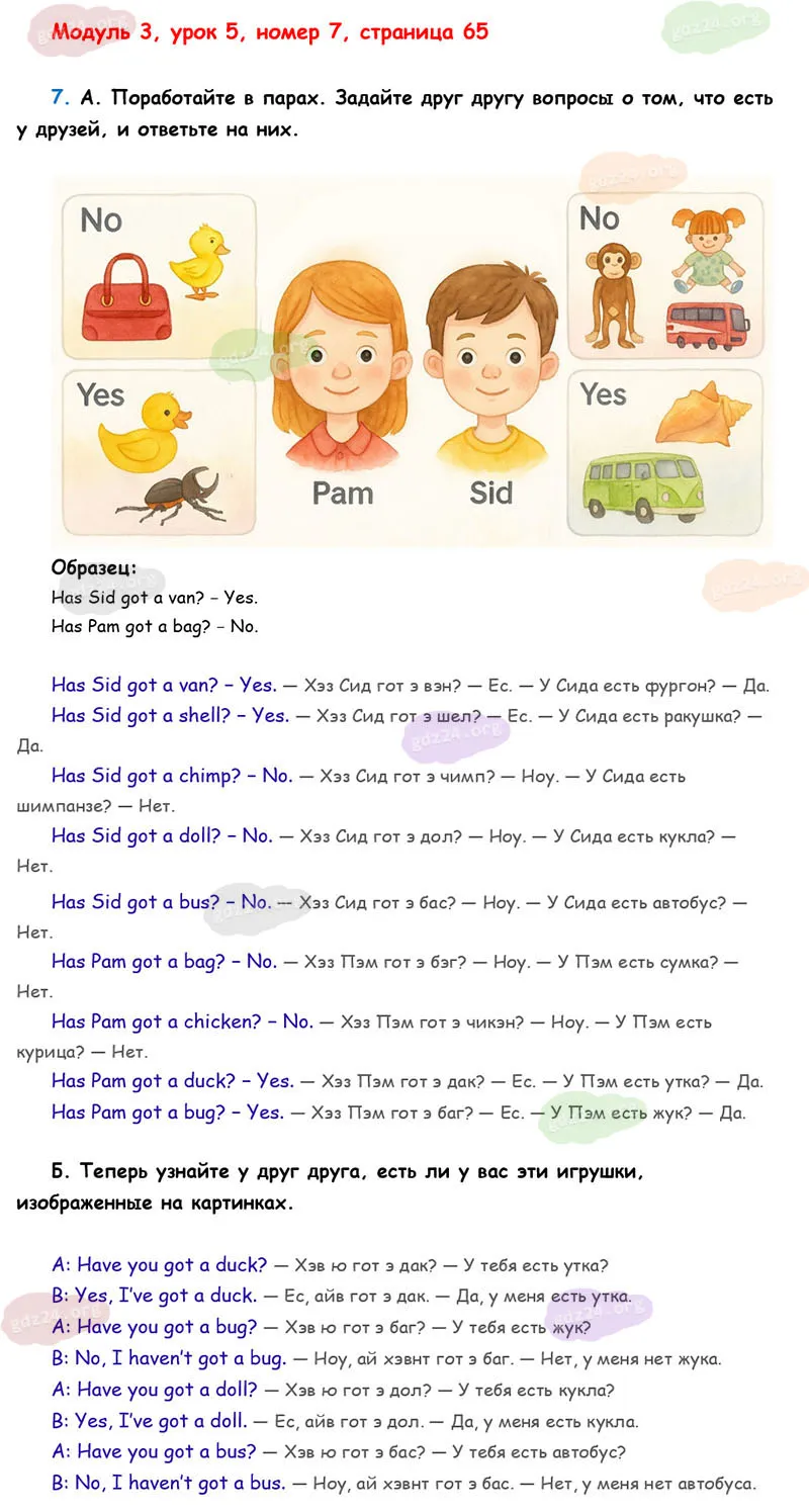 Подробные ответы к 7 заданию на 65 странице учебника О. В. Афанасьевой, К. М. Барановой, И. В. Михеевой 2025 года ФГОС, 2 класс 1 часть. Модуль 3. Вот мои игрушки и питомцы.