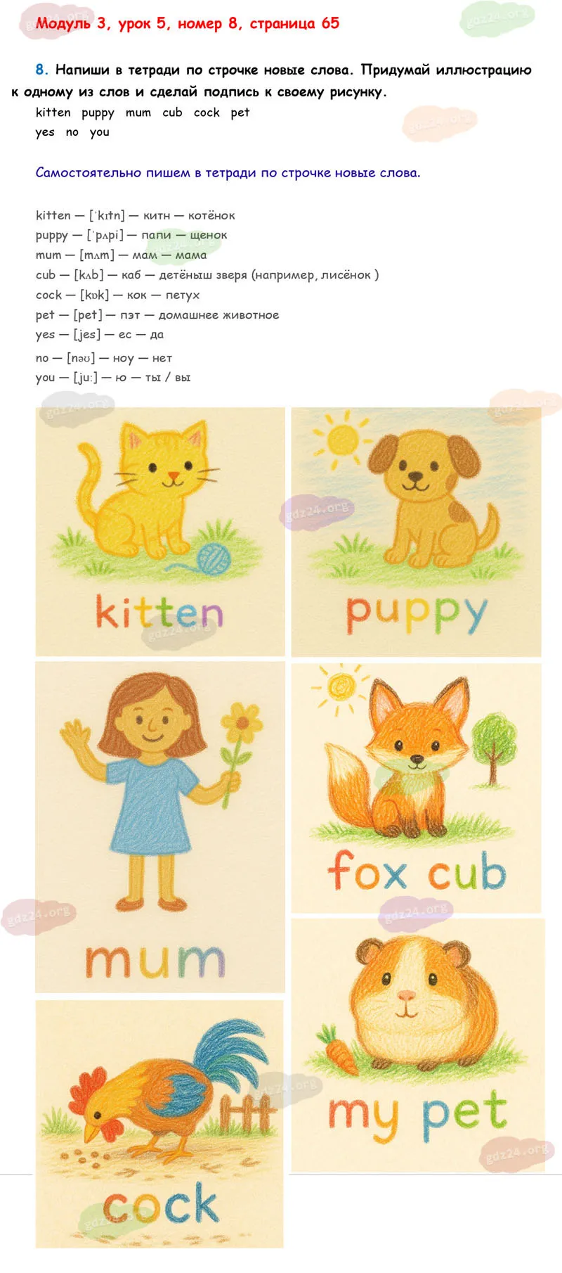 Подробные ответы к 8 заданию на 65 странице учебника О. В. Афанасьевой, К. М. Барановой, И. В. Михеевой 2025 года ФГОС, 2 класс 1 часть. Модуль 3. Вот мои игрушки и питомцы.