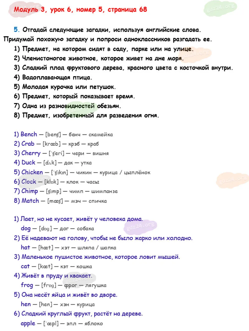 Подробные ответы к 5 заданию на 68 странице учебника О. В. Афанасьевой, К. М. Барановой, И. В. Михеевой 2025 года ФГОС, 2 класс 1 часть. Модуль 3. Вот мои игрушки и питомцы.