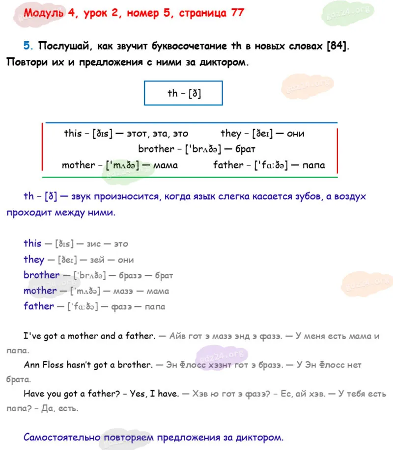 Подробные ответы к 5 заданию на 77 странице учебника О. В. Афанасьевой, К. М. Барановой, И. В. Михеевой 2025 года ФГОС, 2 класс 1 часть. Модуль 4. Вот моя семья.