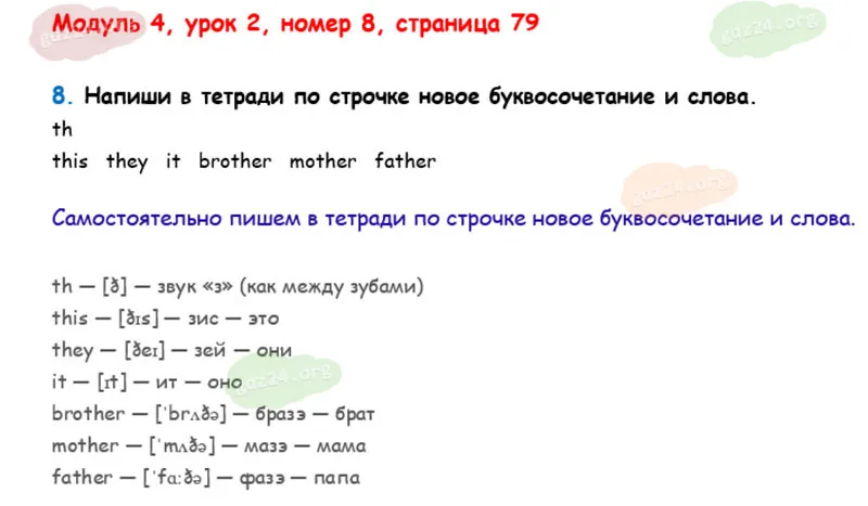 Подробные ответы к 8 заданию на 79 странице учебника О. В. Афанасьевой, К. М. Барановой, И. В. Михеевой 2025 года ФГОС, 2 класс 1 часть. Модуль 4. Вот моя семья.