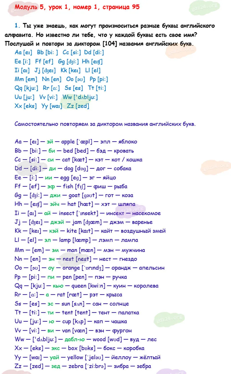 Подробные ответы к 1 заданию на 95 странице учебника О. В. Афанасьевой, К. М. Барановой, И. В. Михеевой 2025 года ФГОС, 2 класс 1 часть. Модуль 5. Вот моя школа и мои друзья.