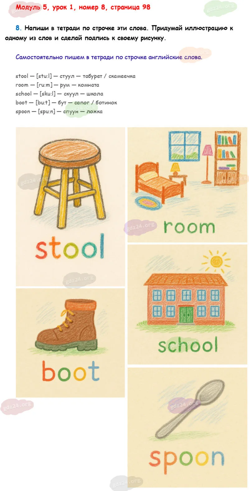 Подробные ответы к 8 заданию на 98 странице учебника О. В. Афанасьевой, К. М. Барановой, И. В. Михеевой 2025 года ФГОС, 2 класс 1 часть. Модуль 5. Вот моя школа и мои друзья.