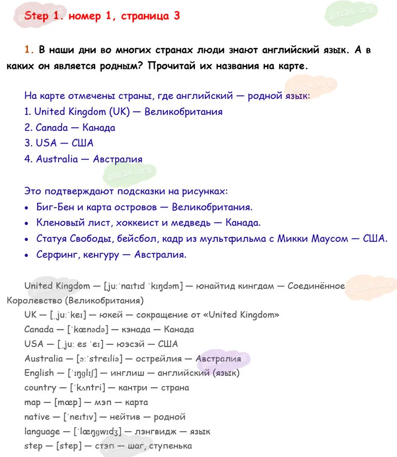 Подробные ответы к 1 заданию на 3 странице учебника Rainbow English. О. В. Афанасьева, И. В. Михеева 2026 года ФГОС, 2 класс 1 часть. Step 1.