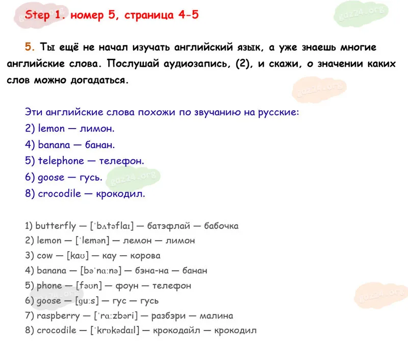 Подробные ответы к 5 заданию на 4-5 странице учебника Rainbow English. О. В. Афанасьева, И. В. Михеева 2026 года ФГОС, 2 класс 1 часть. Step 1.
