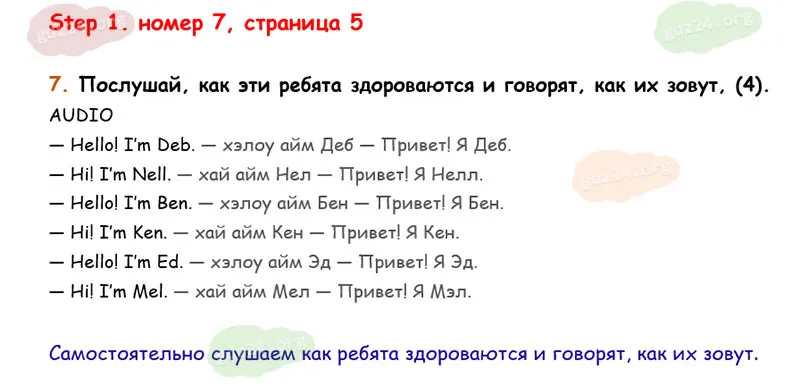 Подробные ответы к 7 заданию на 5 странице учебника Rainbow English. О. В. Афанасьева, И. В. Михеева 2026 года ФГОС, 2 класс 1 часть. Step 1.