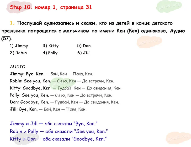 Подробные ответы к 1 заданию на 31 странице учебника Rainbow English. О. В. Афанасьева, И. В. Михеева 2026 года ФГОС, 2 класс 1 часть. Step 10.