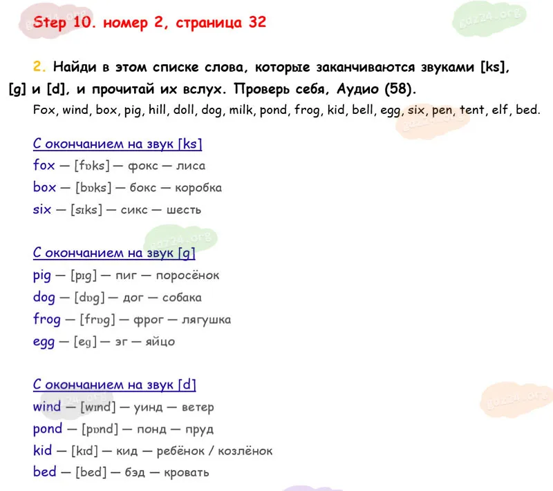 Подробные ответы к 2 заданию на 32 странице учебника Rainbow English. О. В. Афанасьева, И. В. Михеева 2026 года ФГОС, 2 класс 1 часть. Step 10.