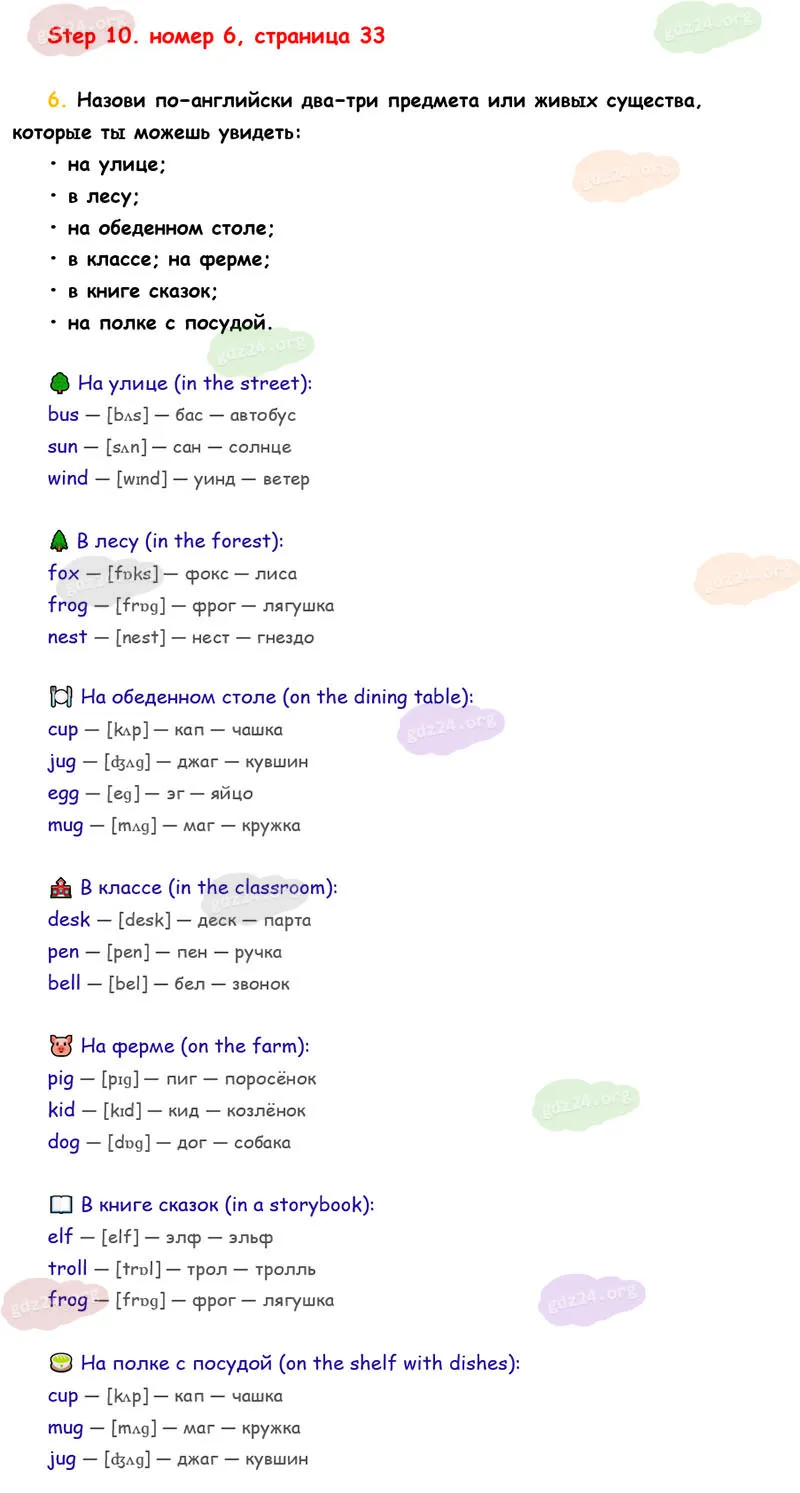Подробные ответы к 6 заданию на 33 странице учебника Rainbow English. О. В. Афанасьева, И. В. Михеева 2026 года ФГОС, 2 класс 1 часть. Step 10.