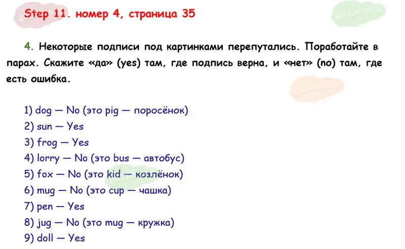 Подробные ответы к 4 заданию на 35 странице учебника Rainbow English. О. В. Афанасьева, И. В. Михеева 2026 года ФГОС, 2 класс 1 часть. Step 11.