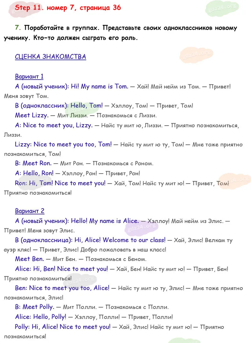 Подробные ответы к 7 заданию на 36 странице учебника Rainbow English. О. В. Афанасьева, И. В. Михеева 2026 года ФГОС, 2 класс 1 часть. Step 11.