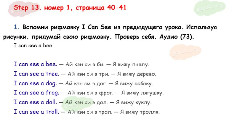 Подробные ответы к 1 заданию на 40-41 странице учебника Rainbow English. О. В. Афанасьева, И. В. Михеева 2026 года ФГОС, 2 класс 1 часть. Step 13.