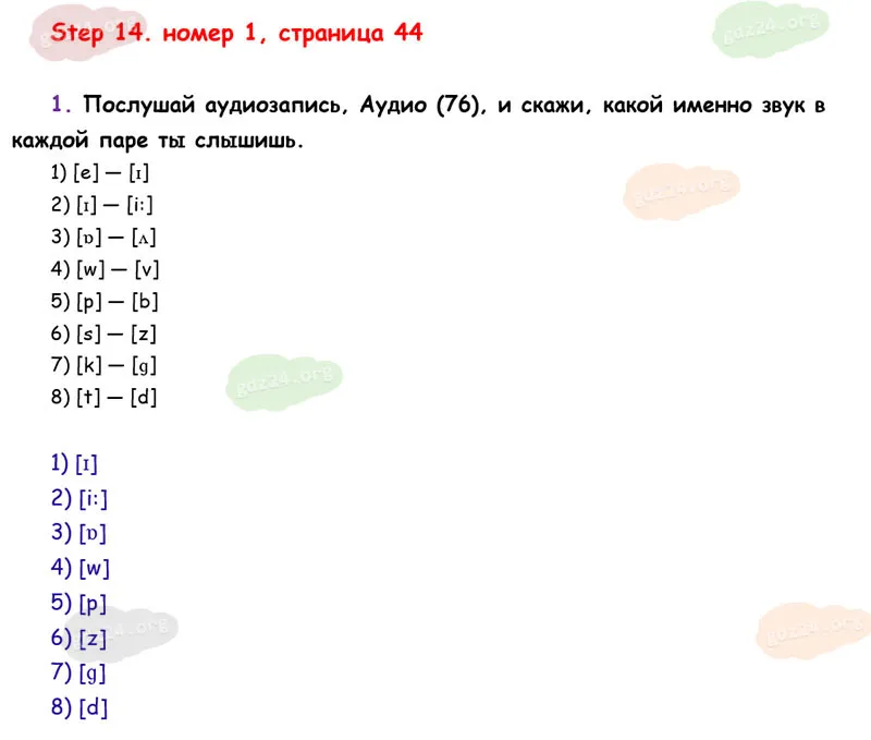Подробные ответы к 1 заданию на 44 странице учебника Rainbow English. О. В. Афанасьева, И. В. Михеева 2026 года ФГОС, 2 класс 1 часть. Step 14.