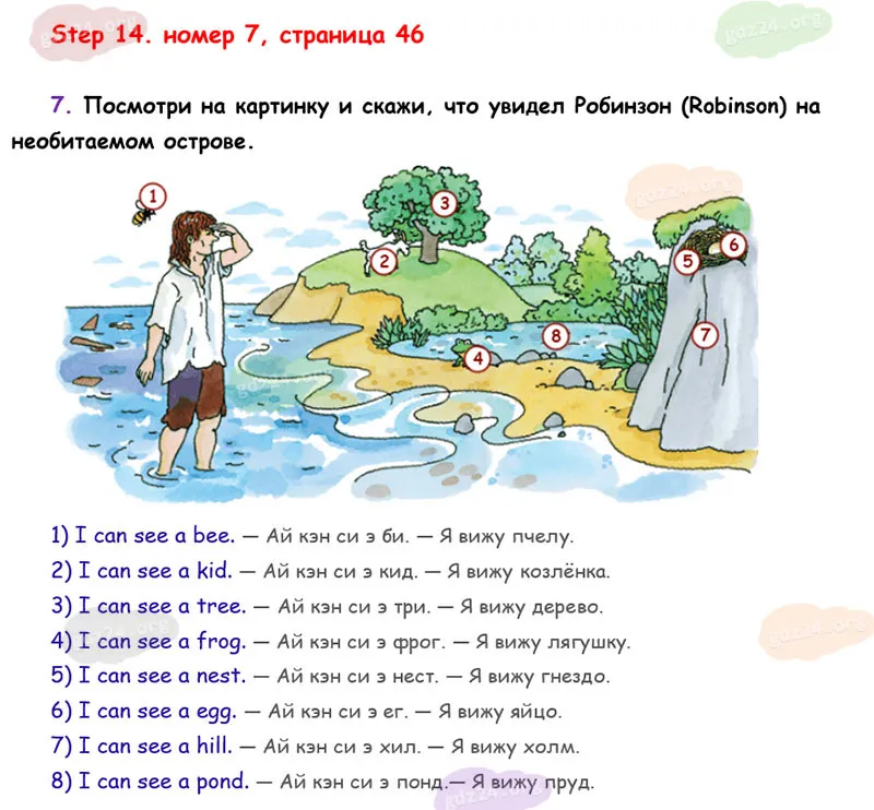 Подробные ответы к 7 заданию на 46 странице учебника Rainbow English. О. В. Афанасьева, И. В. Михеева 2026 года ФГОС, 2 класс 1 часть. Step 14.