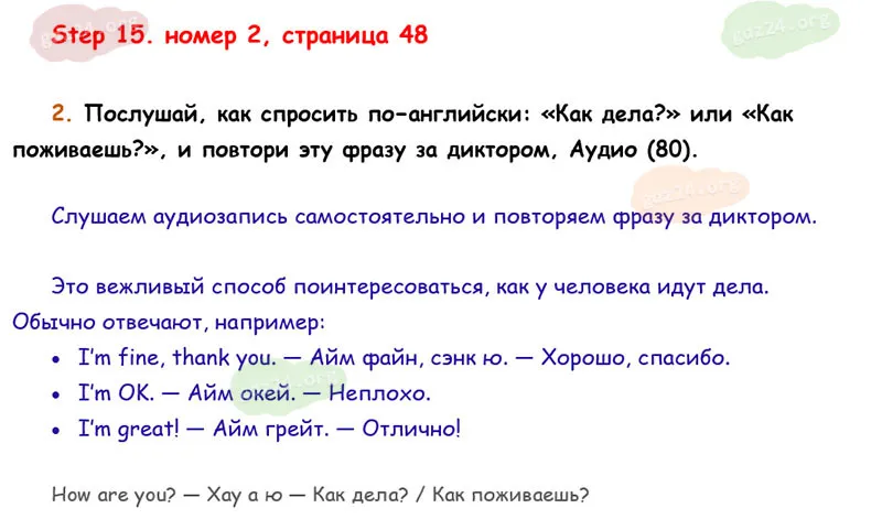 Подробные ответы к 2 заданию на 48 странице учебника Rainbow English. О. В. Афанасьева, И. В. Михеева 2026 года ФГОС, 2 класс 1 часть. Step 15.