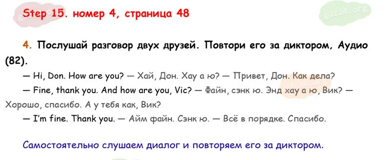 Подробные ответы к 4 заданию на 48 странице учебника Rainbow English. О. В. Афанасьева, И. В. Михеева 2026 года ФГОС, 2 класс 1 часть. Step 15.