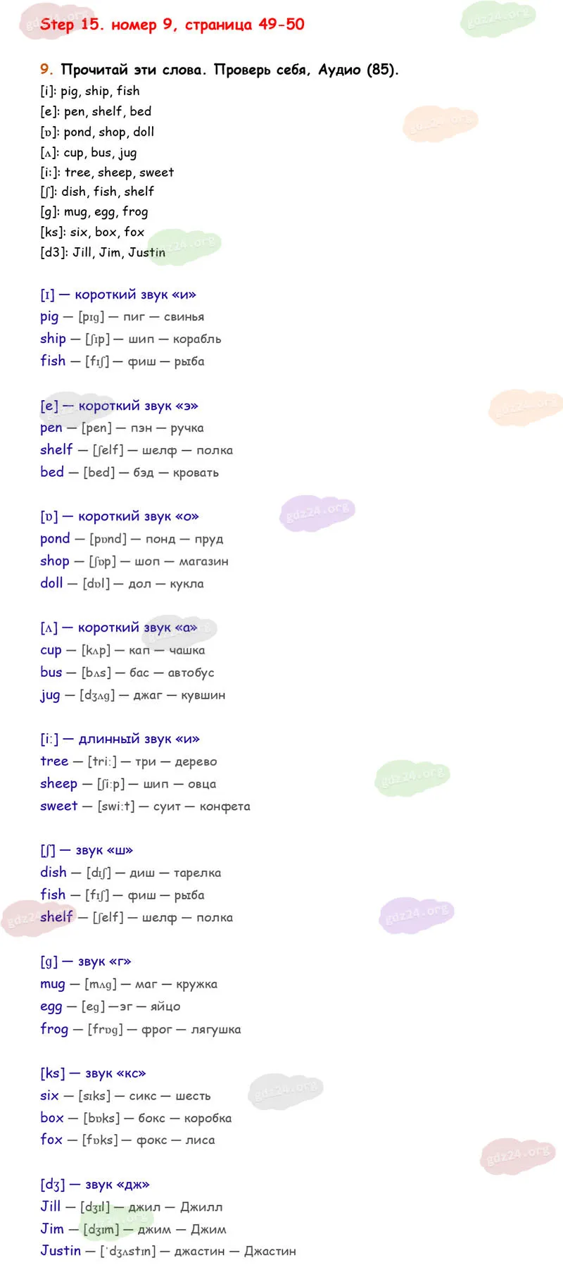 Подробные ответы к 9 заданию на 49-50 странице учебника Rainbow English. О. В. Афанасьева, И. В. Михеева 2026 года ФГОС, 2 класс 1 часть. Step 15.