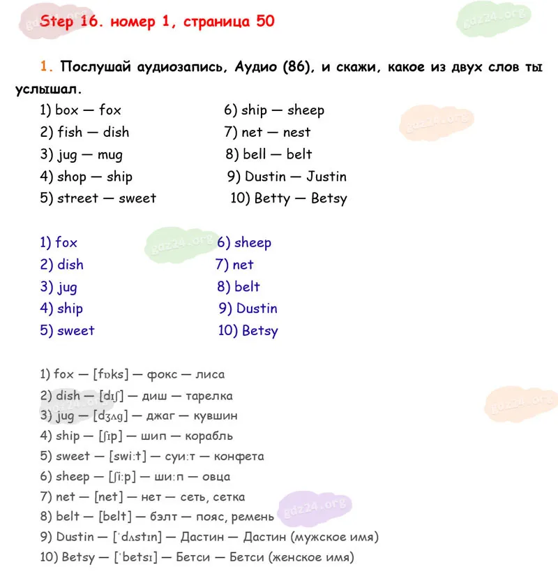 Подробные ответы к 1 заданию на 50 странице учебника Rainbow English. О. В. Афанасьева, И. В. Михеева 2026 года ФГОС, 2 класс 1 часть. Step 16.