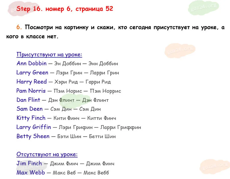 Подробные ответы к 6 заданию на 52 странице учебника Rainbow English. О. В. Афанасьева, И. В. Михеева 2026 года ФГОС, 2 класс 1 часть. Step 16.