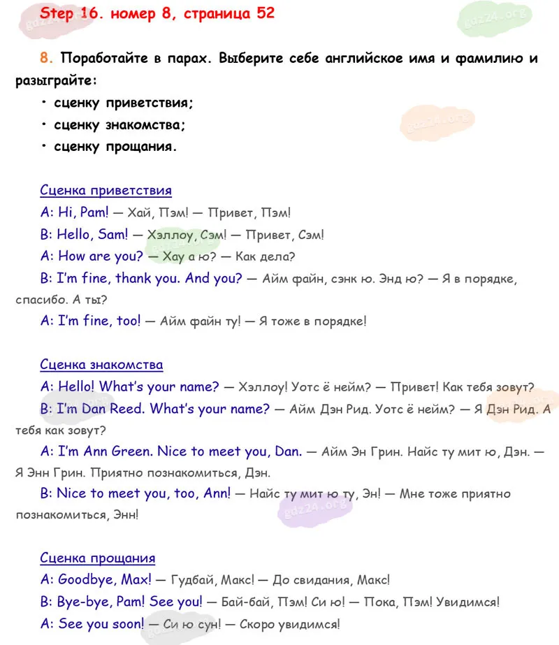 Подробные ответы к 8 заданию на 52 странице учебника Rainbow English. О. В. Афанасьева, И. В. Михеева 2026 года ФГОС, 2 класс 1 часть. Step 16.
