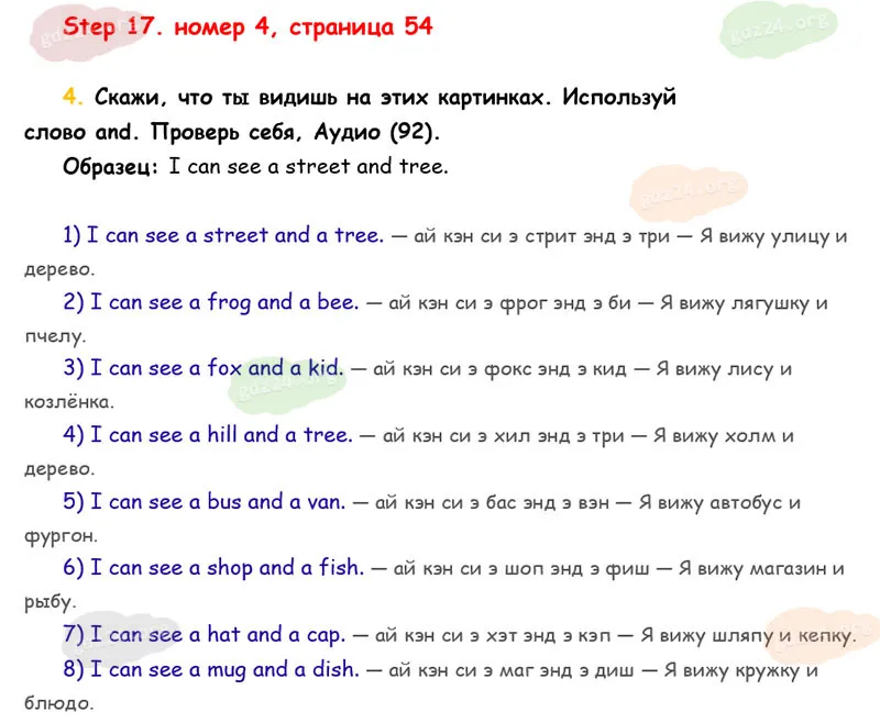 Подробные ответы к 4 заданию на 54 странице учебника Rainbow English. О. В. Афанасьева, И. В. Михеева 2026 года ФГОС, 2 класс 1 часть. Step 17.