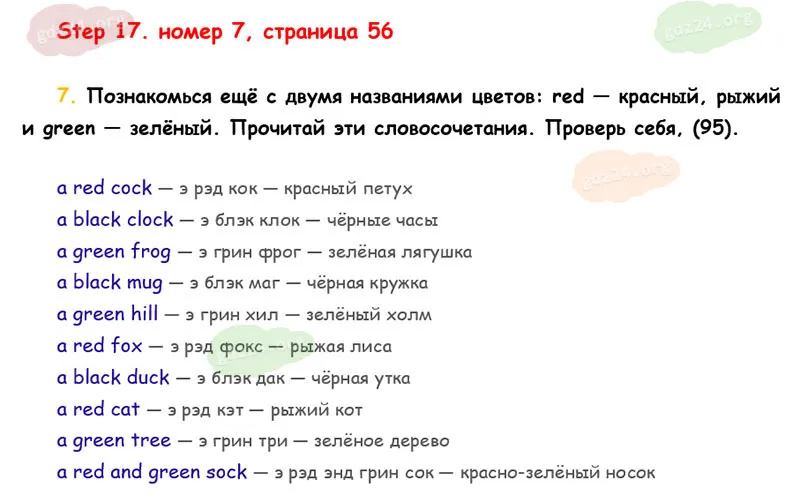 Подробные ответы к 7 заданию на 56 странице учебника Rainbow English. О. В. Афанасьева, И. В. Михеева 2026 года ФГОС, 2 класс 1 часть. Step 17.