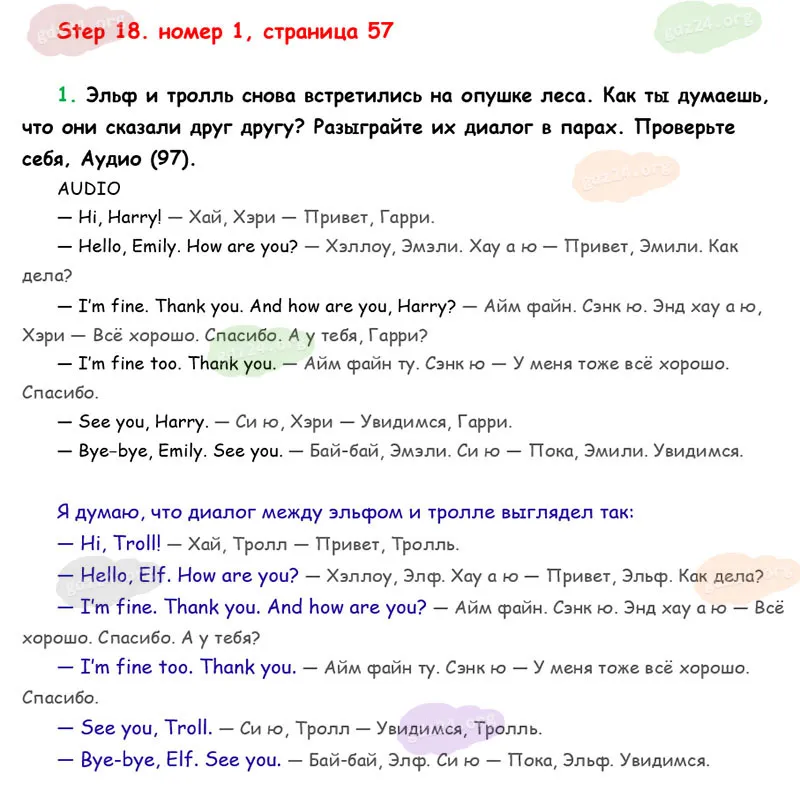 Подробные ответы к 1 заданию на 57 странице учебника Rainbow English. О. В. Афанасьева, И. В. Михеева 2026 года ФГОС, 2 класс 1 часть. Step 18.