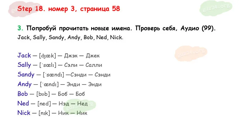 Подробные ответы к 3 заданию на 58 странице учебника Rainbow English. О. В. Афанасьева, И. В. Михеева 2026 года ФГОС, 2 класс 1 часть. Step 18.