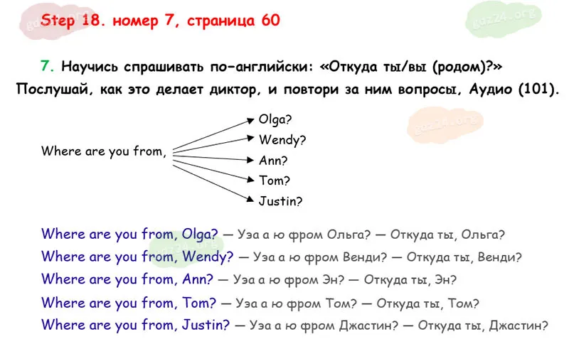 Подробные ответы к 7 заданию на 60 странице учебника Rainbow English. О. В. Афанасьева, И. В. Михеева 2026 года ФГОС, 2 класс 1 часть. Step 18.