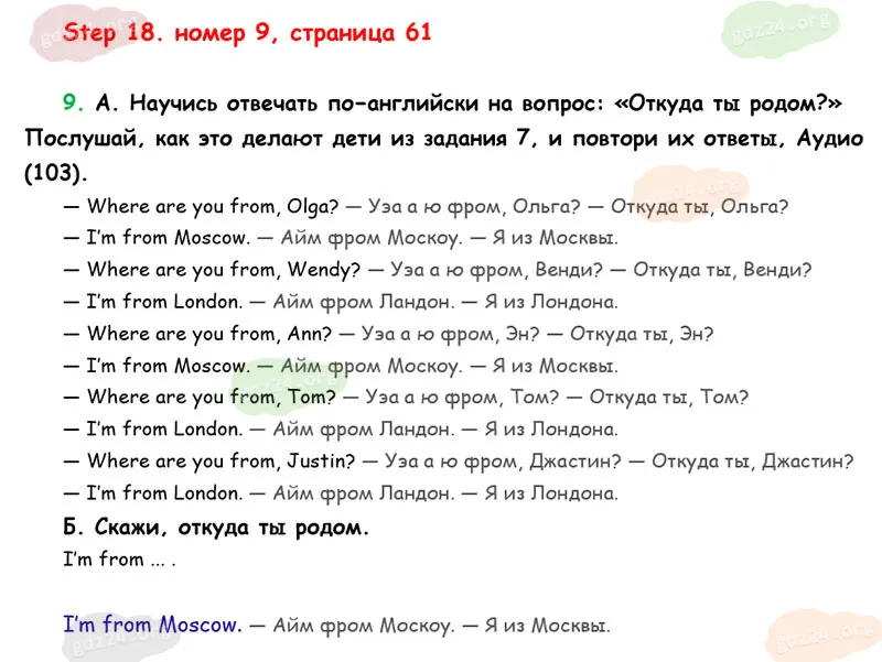 Подробные ответы к 9 заданию на 61 странице учебника Rainbow English. О. В. Афанасьева, И. В. Михеева 2026 года ФГОС, 2 класс 1 часть. Step 18.