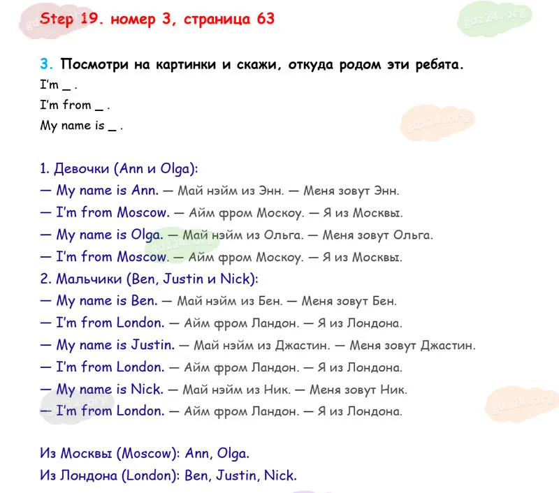 Подробные ответы к 3 заданию на 63 странице учебника Rainbow English. О. В. Афанасьева, И. В. Михеева 2026 года ФГОС, 2 класс 1 часть. Step 19.