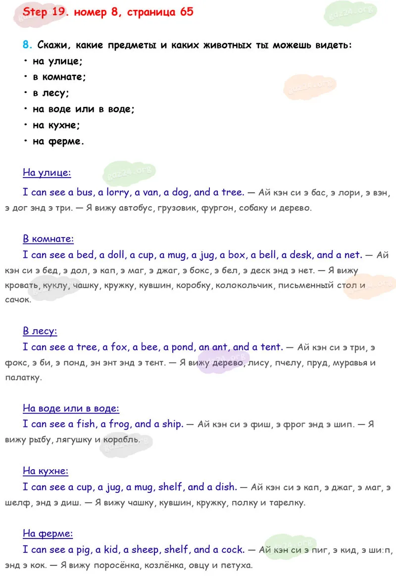 Подробные ответы к 8 заданию на 65 странице учебника Rainbow English. О. В. Афанасьева, И. В. Михеева 2026 года ФГОС, 2 класс 1 часть. Step 19.