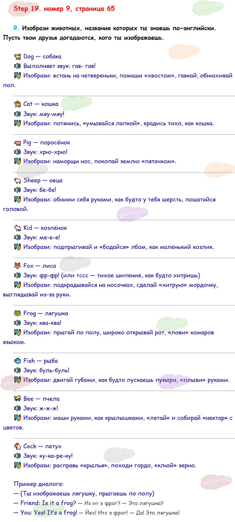 Подробные ответы к 9 заданию на 65 странице учебника Rainbow English. О. В. Афанасьева, И. В. Михеева 2026 года ФГОС, 2 класс 1 часть. Step 19.