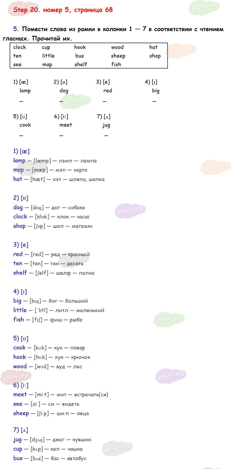 Подробные ответы к 5 заданию на 68 странице учебника Rainbow English. О. В. Афанасьева, И. В. Михеева 2026 года ФГОС, 2 класс 1 часть. Step 20.