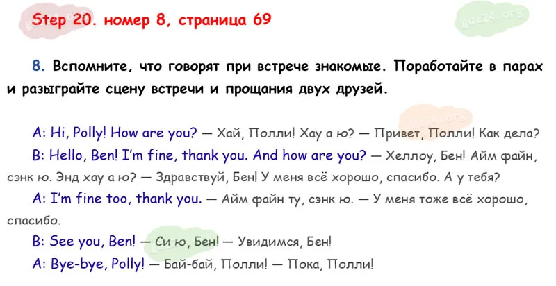 Подробные ответы к 8 заданию на 69 странице учебника Rainbow English. О. В. Афанасьева, И. В. Михеева 2026 года ФГОС, 2 класс 1 часть. Step 20.