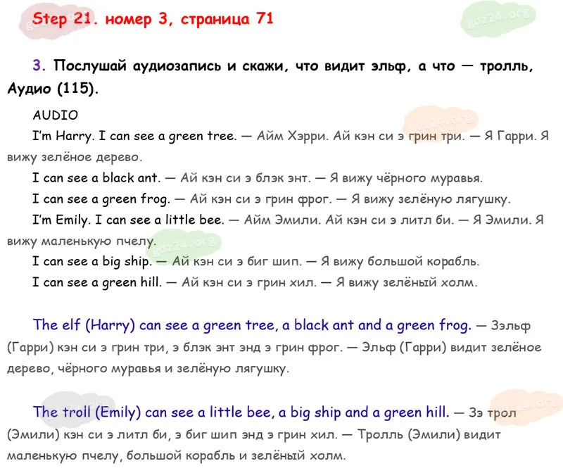 Подробные ответы к 3 заданию на 71 странице учебника Rainbow English. О. В. Афанасьева, И. В. Михеева 2026 года ФГОС, 2 класс 1 часть. Step 21.