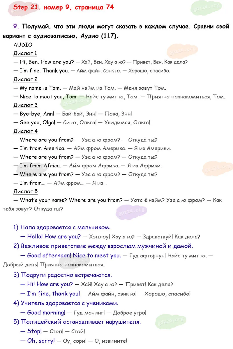Подробные ответы к 9 заданию на 74 странице учебника Rainbow English. О. В. Афанасьева, И. В. Михеева 2026 года ФГОС, 2 класс 1 часть. Step 21.