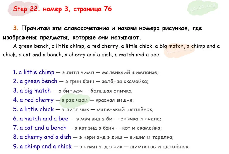 Подробные ответы к 3 заданию на 76 странице учебника Rainbow English. О. В. Афанасьева, И. В. Михеева 2026 года ФГОС, 2 класс 1 часть. Step 22.