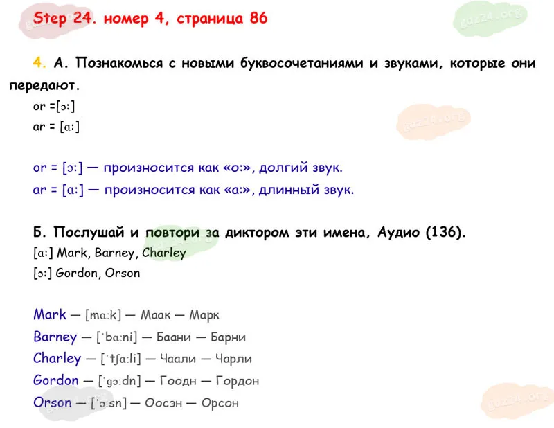 Подробные ответы к 4 заданию на 86 странице учебника Rainbow English. О. В. Афанасьева, И. В. Михеева 2026 года ФГОС, 2 класс 1 часть. Step 24.