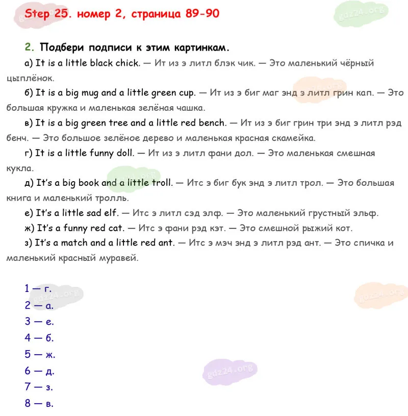 Подробные ответы к 2 заданию на 89-90 странице учебника Rainbow English. О. В. Афанасьева, И. В. Михеева 2026 года ФГОС, 2 класс 1 часть. Step 25.