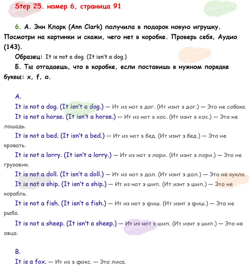 Подробные ответы к 6 заданию на 91 странице учебника Rainbow English. О. В. Афанасьева, И. В. Михеева 2026 года ФГОС, 2 класс 1 часть. Step 25.