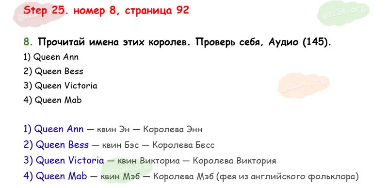 Подробные ответы к 8 заданию на 92 странице учебника Rainbow English. О. В. Афанасьева, И. В. Михеева 2026 года ФГОС, 2 класс 1 часть. Step 25.