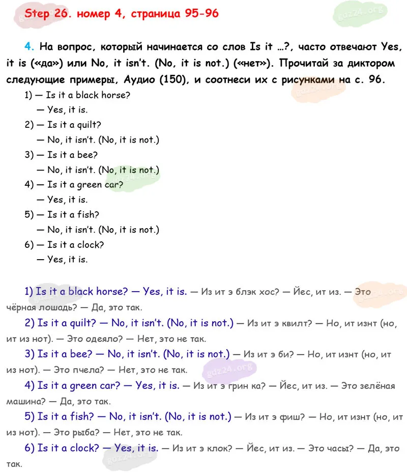 Подробные ответы к 4 заданию на 95-96 странице учебника Rainbow English. О. В. Афанасьева, И. В. Михеева 2026 года ФГОС, 2 класс 1 часть. Step 26.