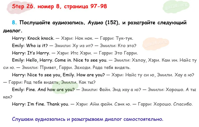 Подробные ответы к 8 заданию на 97-98 странице учебника Rainbow English. О. В. Афанасьева, И. В. Михеева 2026 года ФГОС, 2 класс 1 часть. Step 26.