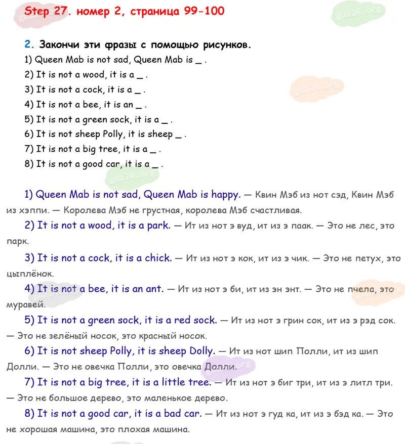 Подробные ответы к 2 заданию на 99-100 странице учебника Rainbow English. О. В. Афанасьева, И. В. Михеева 2026 года ФГОС, 2 класс 1 часть. Step 27.