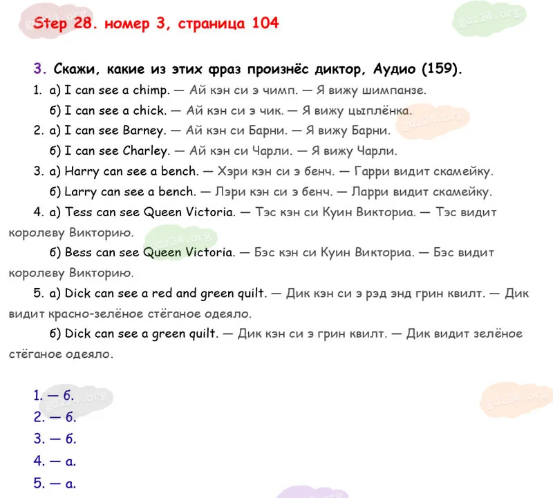 Подробные ответы к 3 заданию на 104 странице учебника Rainbow English. О. В. Афанасьева, И. В. Михеева 2026 года ФГОС, 2 класс 1 часть. Step 28.