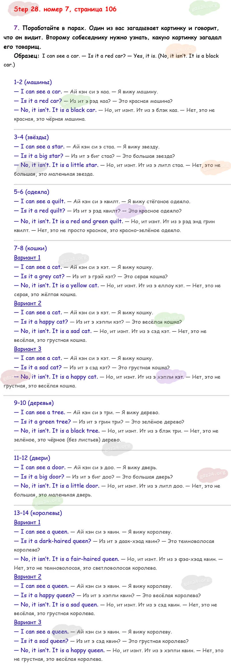 Подробные ответы к 7 заданию на 106 странице учебника Rainbow English. О. В. Афанасьева, И. В. Михеева 2026 года ФГОС, 2 класс 1 часть. Step 28.