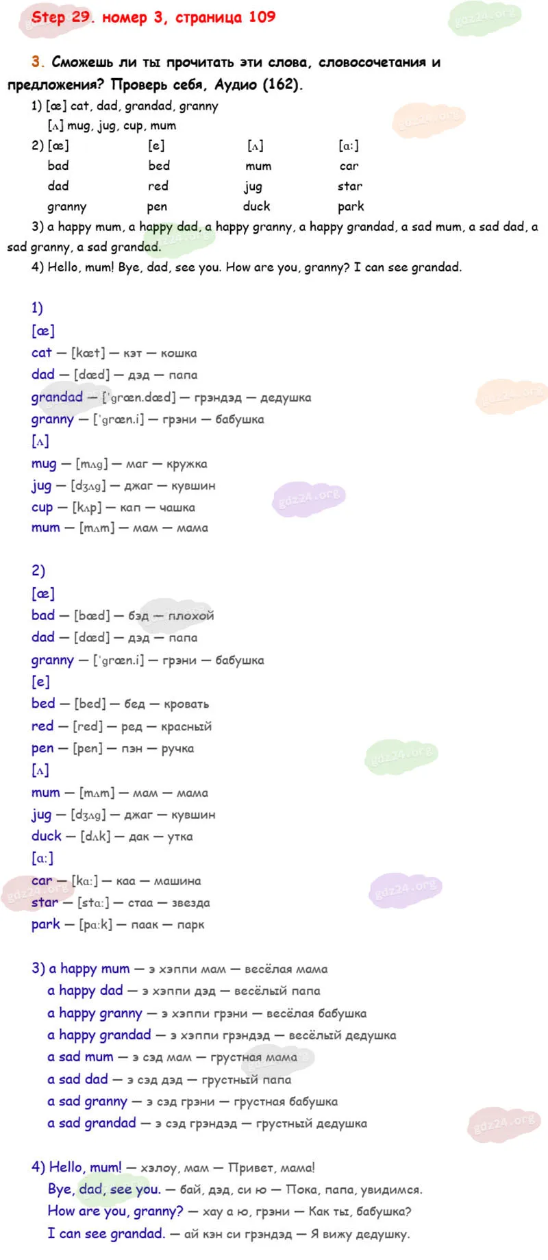 Подробные ответы к 3 заданию на 109 странице учебника Rainbow English. О. В. Афанасьева, И. В. Михеева 2026 года ФГОС, 2 класс 1 часть. Step 29.