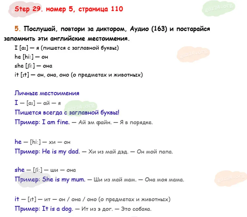 Подробные ответы к 5 заданию на 110 странице учебника Rainbow English. О. В. Афанасьева, И. В. Михеева 2026 года ФГОС, 2 класс 1 часть. Step 29.